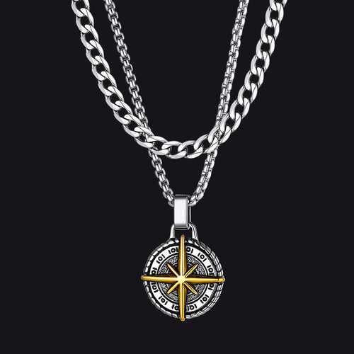 Nordic Viking Compass Skull Pendant Necklace for Men -