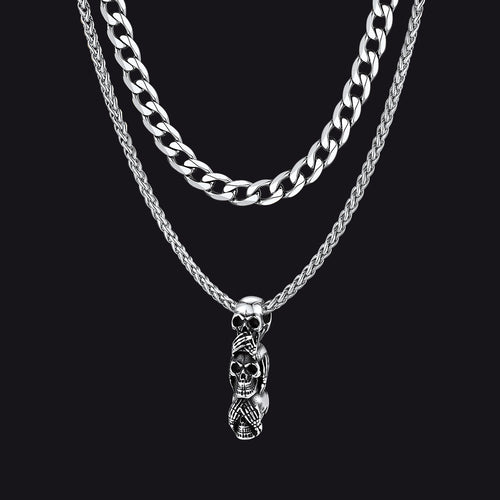 Personalized Photo Pendant Necklace with Skull for Men Women -
